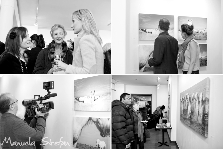 Back in February I have had the immense pleasure and joy to present my “White-Power and Grace” fine equine art collection to the world. Sixteen large canvases were exhibited in the contemporary space of the Art Square Gallery, downtown Toronto. A very emotional and extremely rewarding experience! What mattered to me immensely was people deeply reacting to the images on the walls while feeling transported in a different world. Because this is exactly how I felt while meeting and photographing these gracious white beings back in 2011 while in Camargue. I was fortunate enough to experience one of those rare moments when one feels completely connected with something so pure and greater than anything imaginable. Back to the show: I appreciate the help and support I have received from the gallery owner, Leyla Kizilirmak and all my great friends who have been involved in the process. Special thanks to my photographer friend Sebastien Auger who has graciously captured so many lovely moments. I also want to extend many thanks to poet and musician Nik Beat who offered to play guitar at the closing night party.