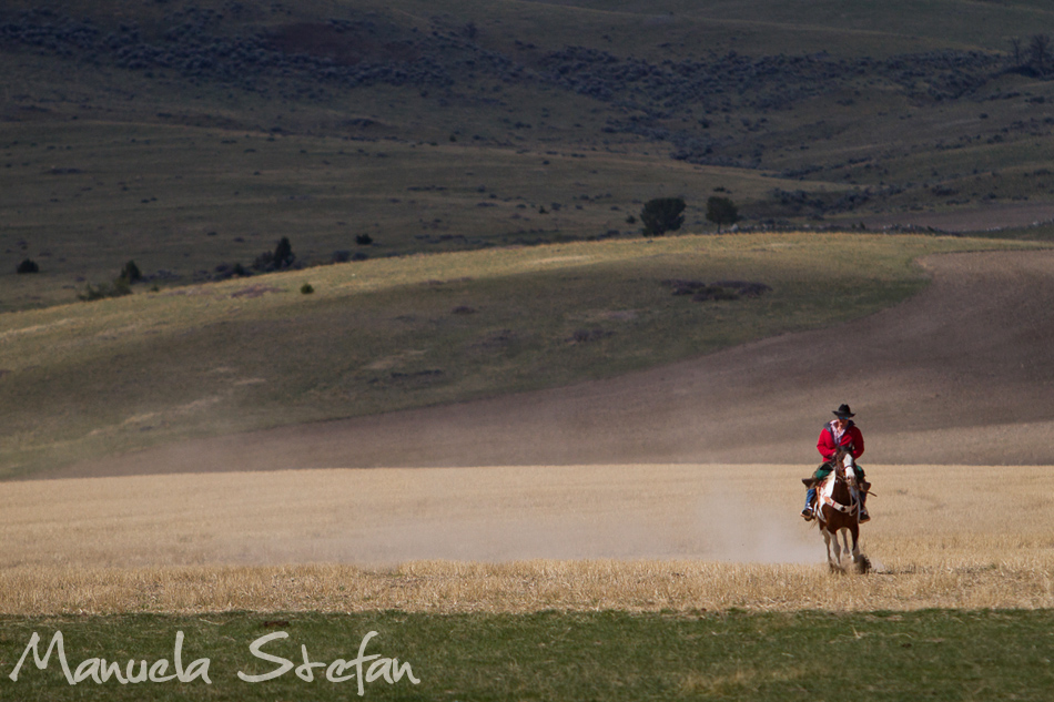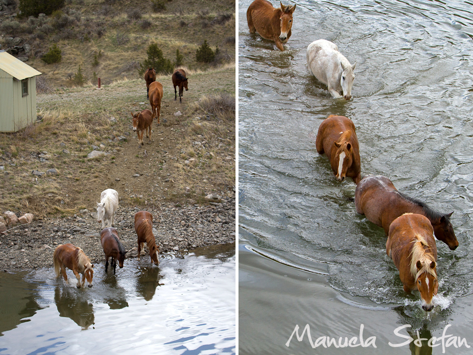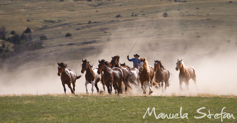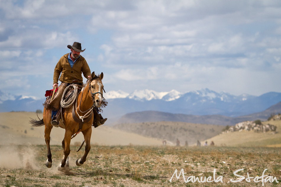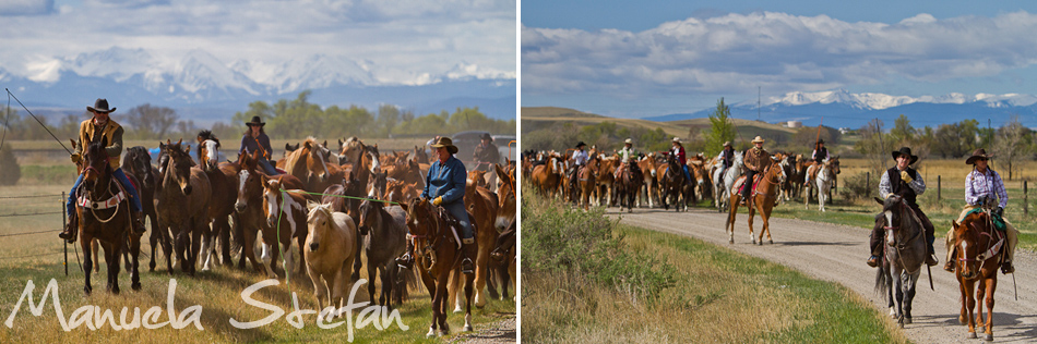 One quiet evening in the fall of last year I was browsing the Internet looking for places where wild Mustangs ran free. Out of the blue and for no apparent reason I felt like typing the word Montana in. And that’s when it happened: the Montana Horses website came up and with it, some exhilarating images. I was blown away, I did not even know something like this still existed in today’s modern world. I kept on reading through and found out that the owners of the Mantle ranch in the Three Forks area, Renee and Kail Mantle, were announcing something that seemed to be of importance: the last round up. As they have decided to sell their ranch, the spring of 2012 was going to be the last time when their 300 and plus horses were going to be brought back to the ranch from their winter pastures during a huge 3 day event: the Montana horse drive. Still amazed at the novelty of it all, I somehow knew this would be an experience I could not miss. My love for horses, watching them run free almost like their Mustang brothers combined with my deep passion for exploring new places in this world were just a few of many reasons why I made the decision to attend. It did not take me long to make up my mind.